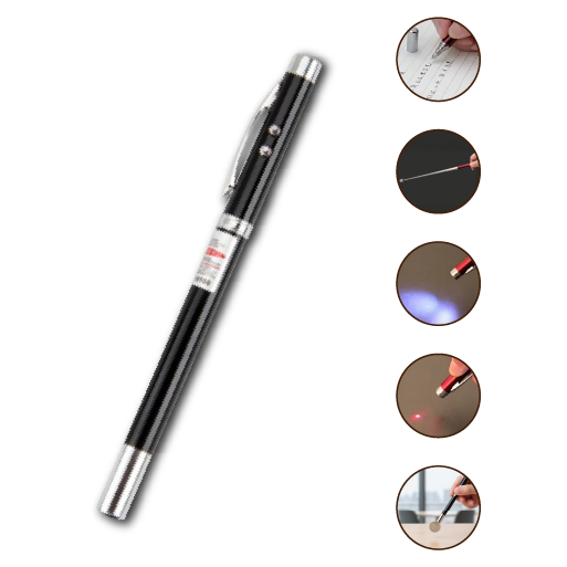 Bolígrafo de tinta suave, para una escritura fluida y elegante. Extensible, ideal para alcanzar o señalar puntos difíciles con precisión. Linterna LED, perfecta para iluminar en cualquier situación. Puntero láser, ideal para presentaciones y reuniones. Imán, que facilita recoger objetos metálicos pequeños con la punta.